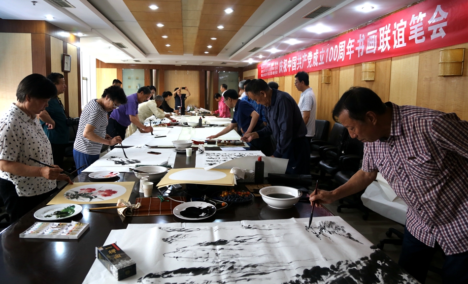 为庆祝中国共产党成立100周年,回顾党的奋斗历程,歌颂美好新时代,助力公司企业文化建设。6月24日,金火科技(南京)有限公司、烟台市老年书画研究会、烟台市老干部志愿者协会共同举办“庆祝中国共产党成立100周年联谊书画笔会”。本次活动共有18位县处级退休老干部书画家参加。